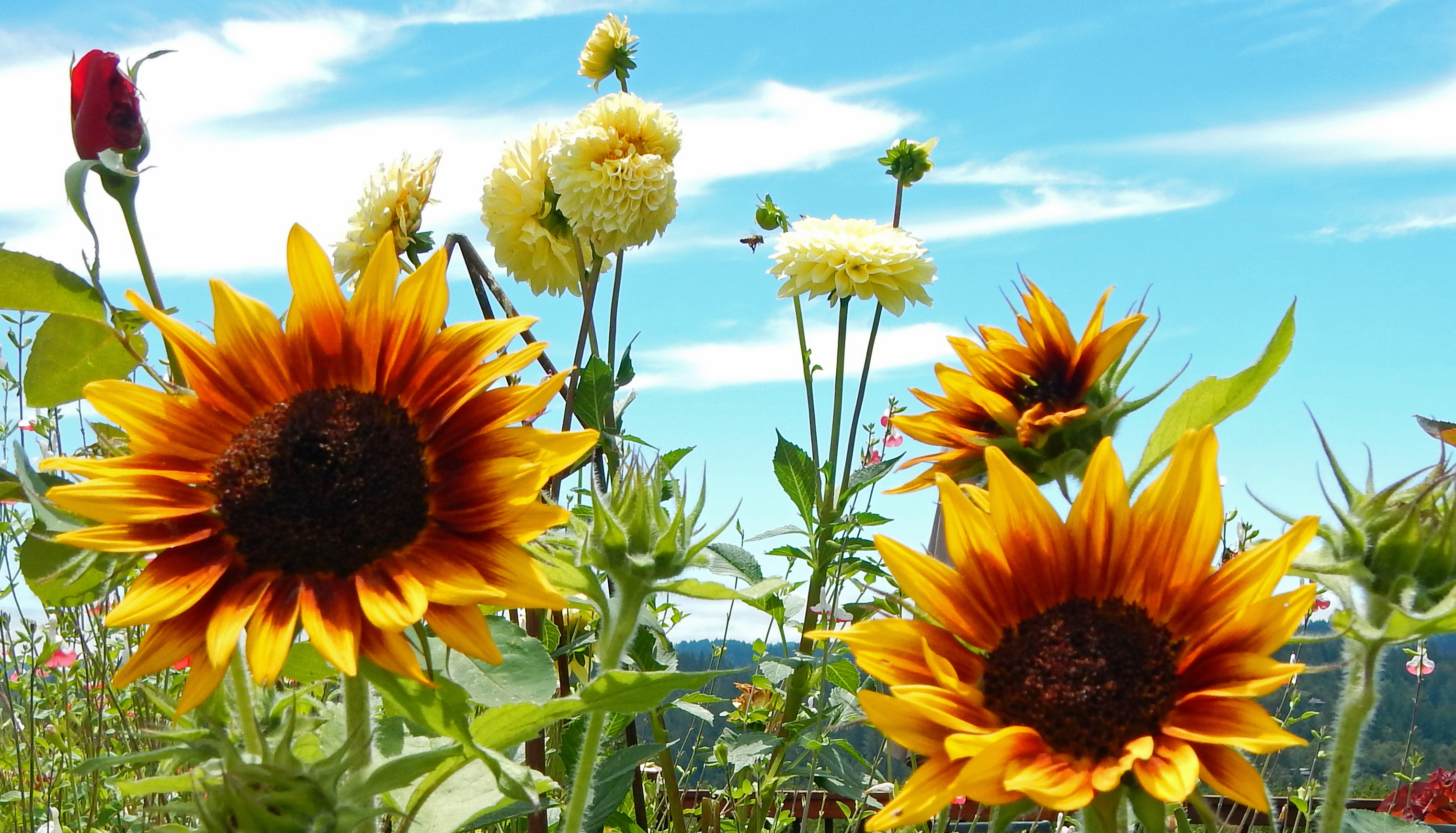 So, is nature confused?  A very early but very dry start to the spring growing season…an unseasonably cool late spring…a full day of light, drippy precipitation the first week of June.  (Let’s not call it rain. The argument would point out how paltry the wetness was relative to the Seattle-like grayness of the day.)sunflower